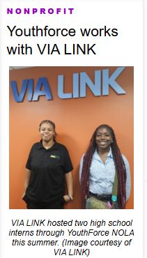t was a pleasure to serve as an intern employer through YouthForce NOLA, a nonprofit preparing New Orleans public school students for successful futures through career exposure, work experience and soft skills development. This summer, VIA LINK welcomed two incredible high school seniors as interns. They impressed us with their talent and professionalism, developing social…