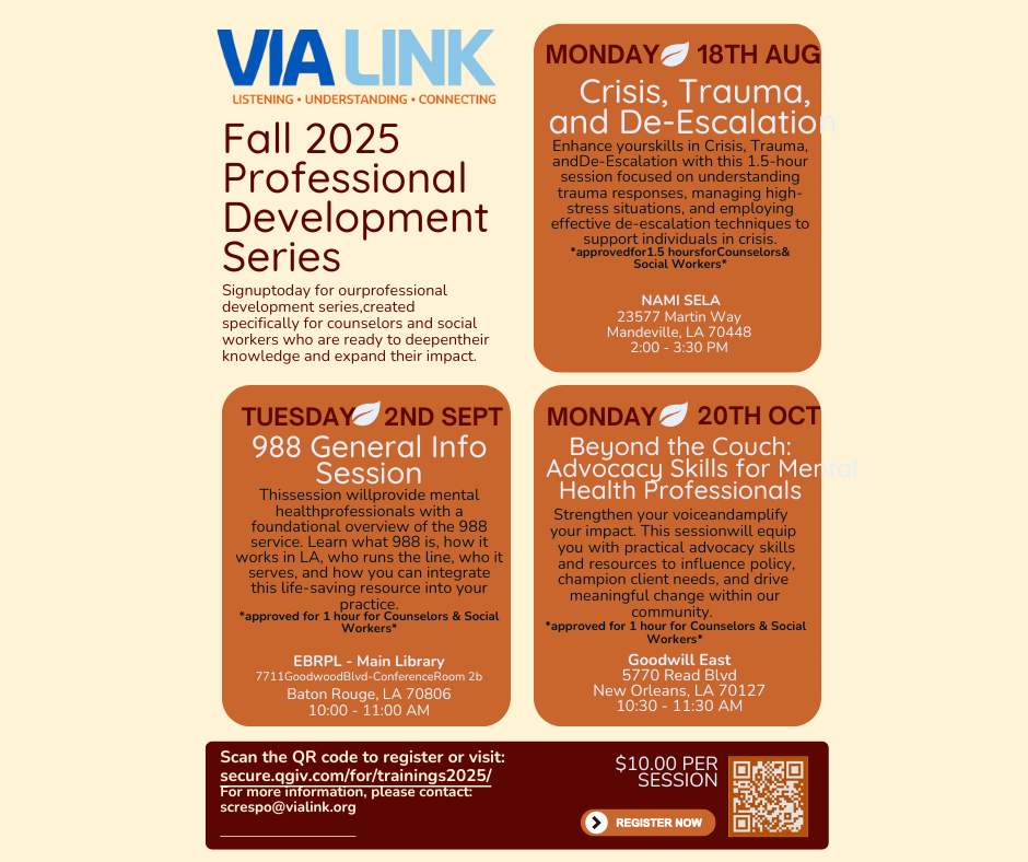 VIA LINK is also able to approve training content for social work CEUs for other agencies. For application information email screspo@vialink.org